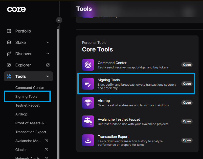 * Go to [https://core.app](https://core.app/) and access your wallet
