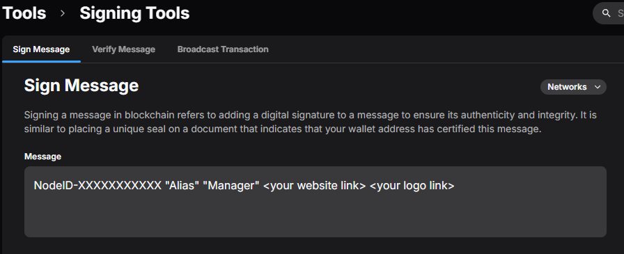 NodeID-XXXXXXXXXXX "Alias" "Manager" < your website link > < your logo link >